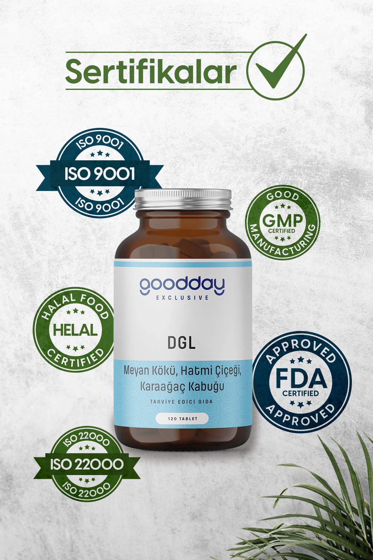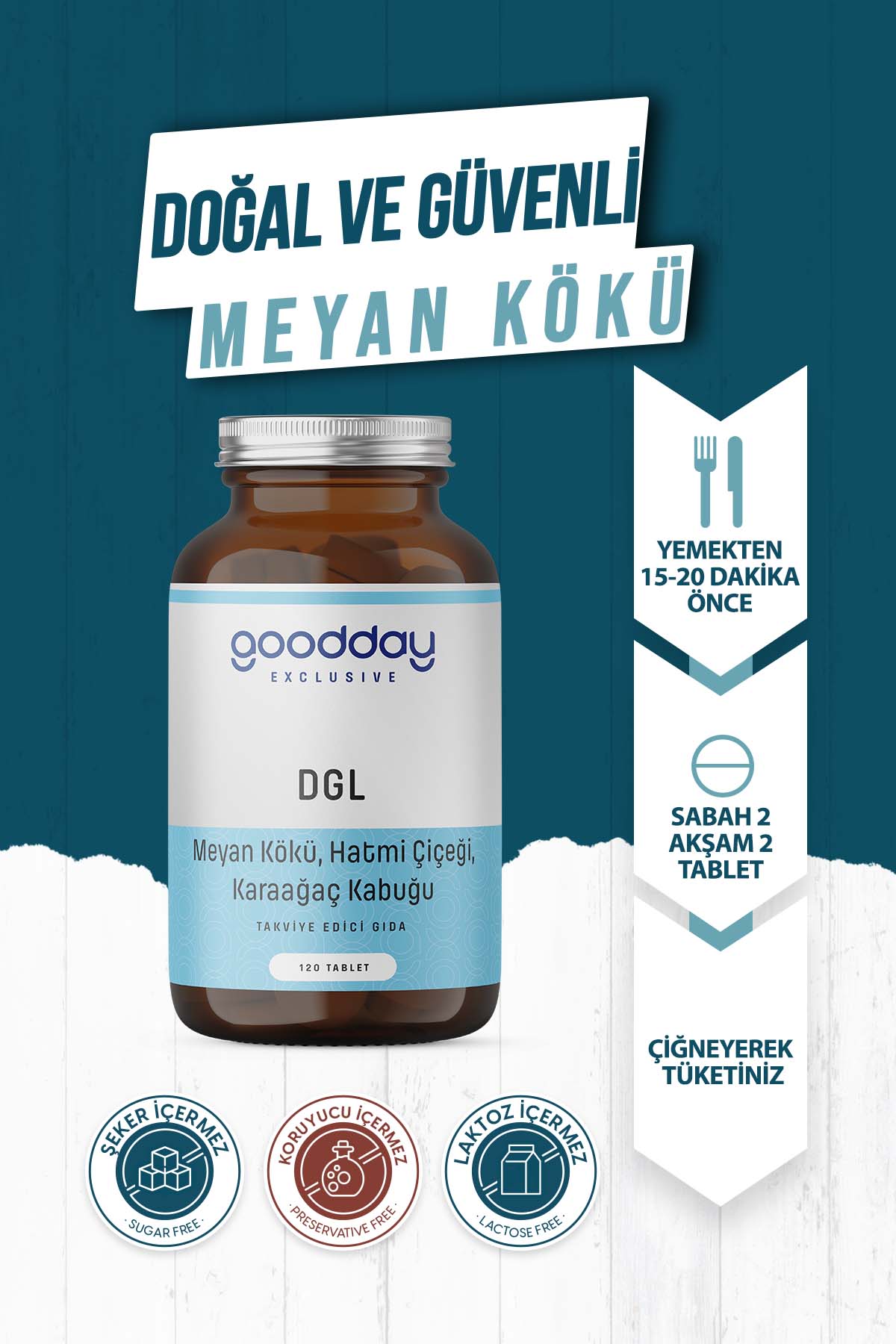 Kullanım Bilgisi: Tavsiye edilen günlük porsiyon miktarı yetişkinlerde sabah 2 tablet akşam 2 tablet olmak üzere günde 4 tablet çiğnenerek kullanılması önerilir.Adının anlamı: Doğal ve Güvenli Licorice (Meyan Kökü); Türkiye de ilk DGL etken maddesinin kullanımı. Her meyan kökü DGL değildir! DGL (degliserize licorice) : meyan kökünün Glisirizinden arındırılmış güvenli formudur.